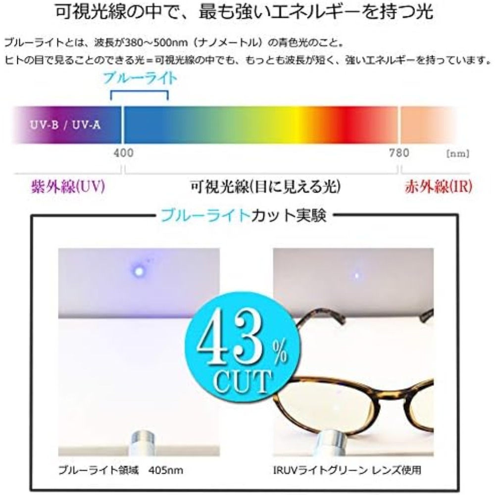 紫外線・ブルーライト・近赤外線をまとめてカットします。「ライトスモークレンズ」は紫外線→ほぼ100%カット!ブルーライト→約41%カット!近赤外線→約42%カット!