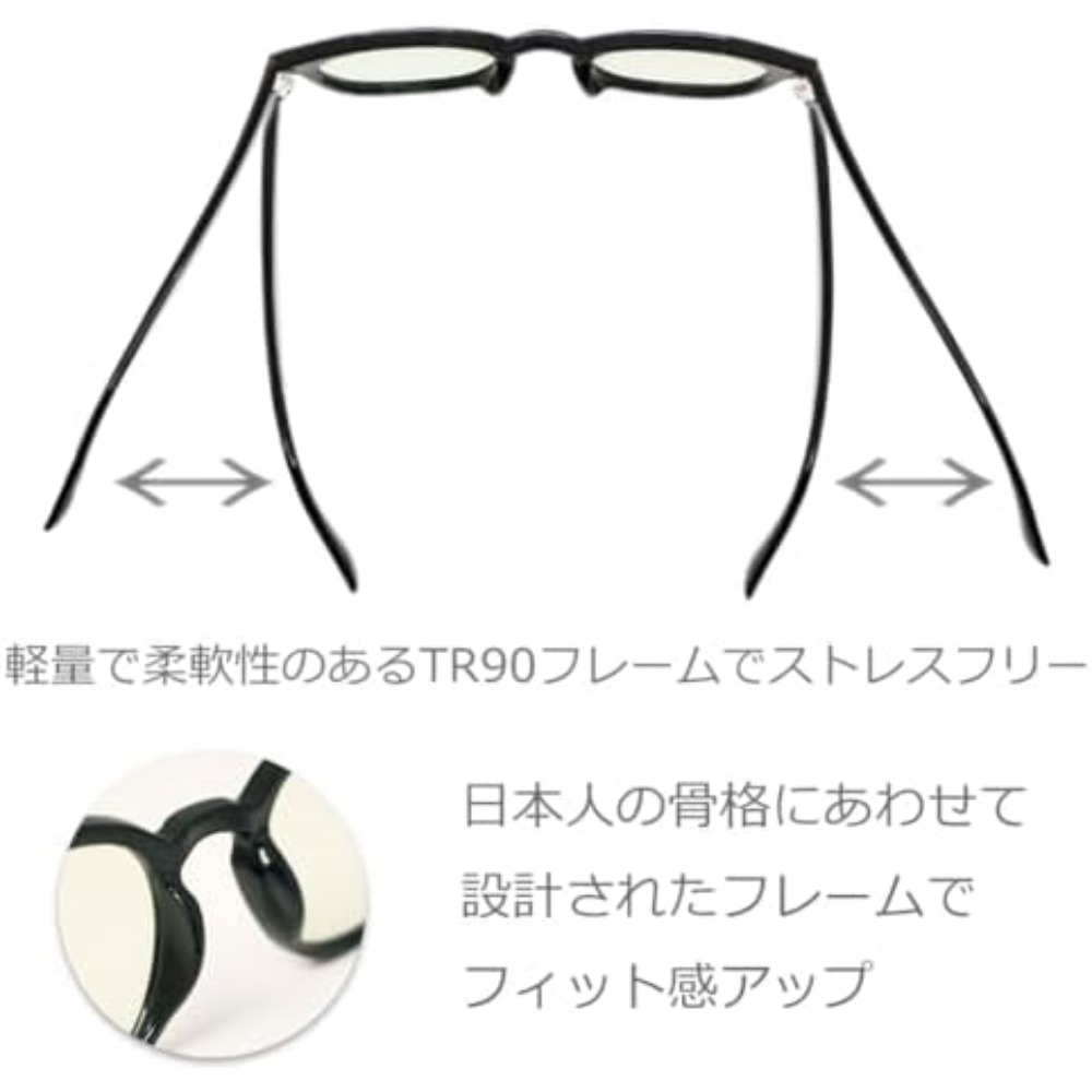 フレームには宇宙開発でも使用される柔軟性と強度を兼ね備えた素材TR-90を使用。男女兼用のおしゃれなフレームです。日本人の骨格に合わせて設計したフレームの為、フィット感抜群!